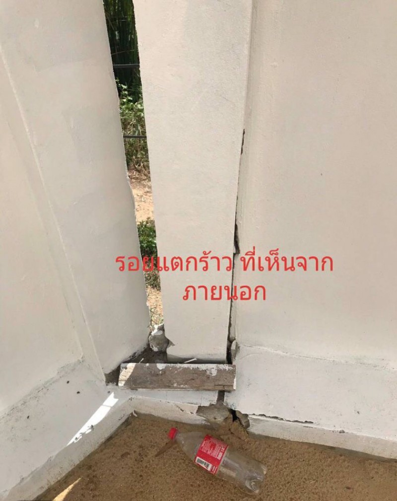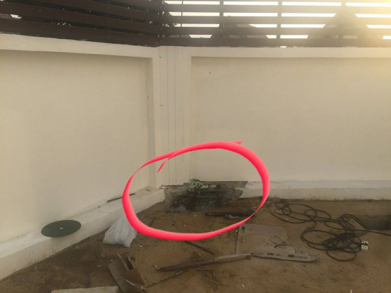 บริษัทฯ ตรวจสอบพบปัญหา รั้วมีการทรุดตัวและมีรอยแตกร้าว ค่อนข้างเยอะ โดยวิศวกรของทางบริษัท ได้แจ้งให้โครงการทุบและสกัดรั้วออกดูว่าเกิดจากสาเหตุอะไร และทางโครงการได้ทำการทุบและสกัดรั้วออกดู ซึ่งผลปรากฎว่า เหล็กของคานรั้ว สั้นยาวไม่ถึงตำแหน่งเสาตอม่อ เมื่อเวลาก่อสร้างรั้ว จึงมีผลทำให้คานรั้วไม่สามารถ รับน้ำหนักของรั้วด้านบน จึงทำให้เกิดการทรุดตัว โดยทางวิศวกรของบริษัท แจ้งให้โครงการทุบรั้ว แนวที่มีปัญหาออก และทำการผูกเหล็กทำคานรั้ว ก่ออิฐใหม่ให้แก่ลูกค้า ทางโครงการได้ดำเนินการแก้ไขให้ลูกค้าแล้วเสร็จ